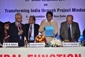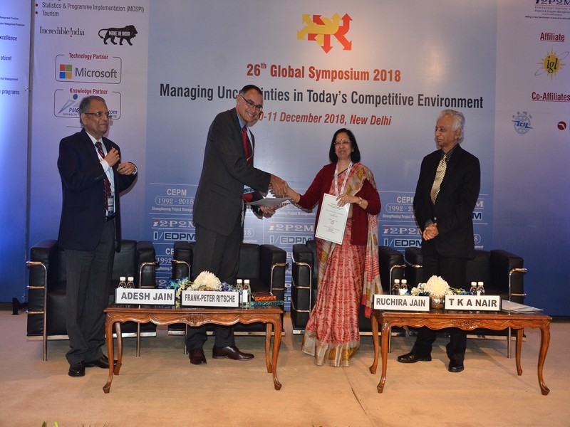 In 2017 in the 25th Global Symposium Hon’ble Union Minister of Commerce and Industry, Govt. of India, Suresh Prabhu, the Chief Guest releasing the book “Building a Project Oriented Society” authored by Ms. Ruchira Jain, MD, CEPM.